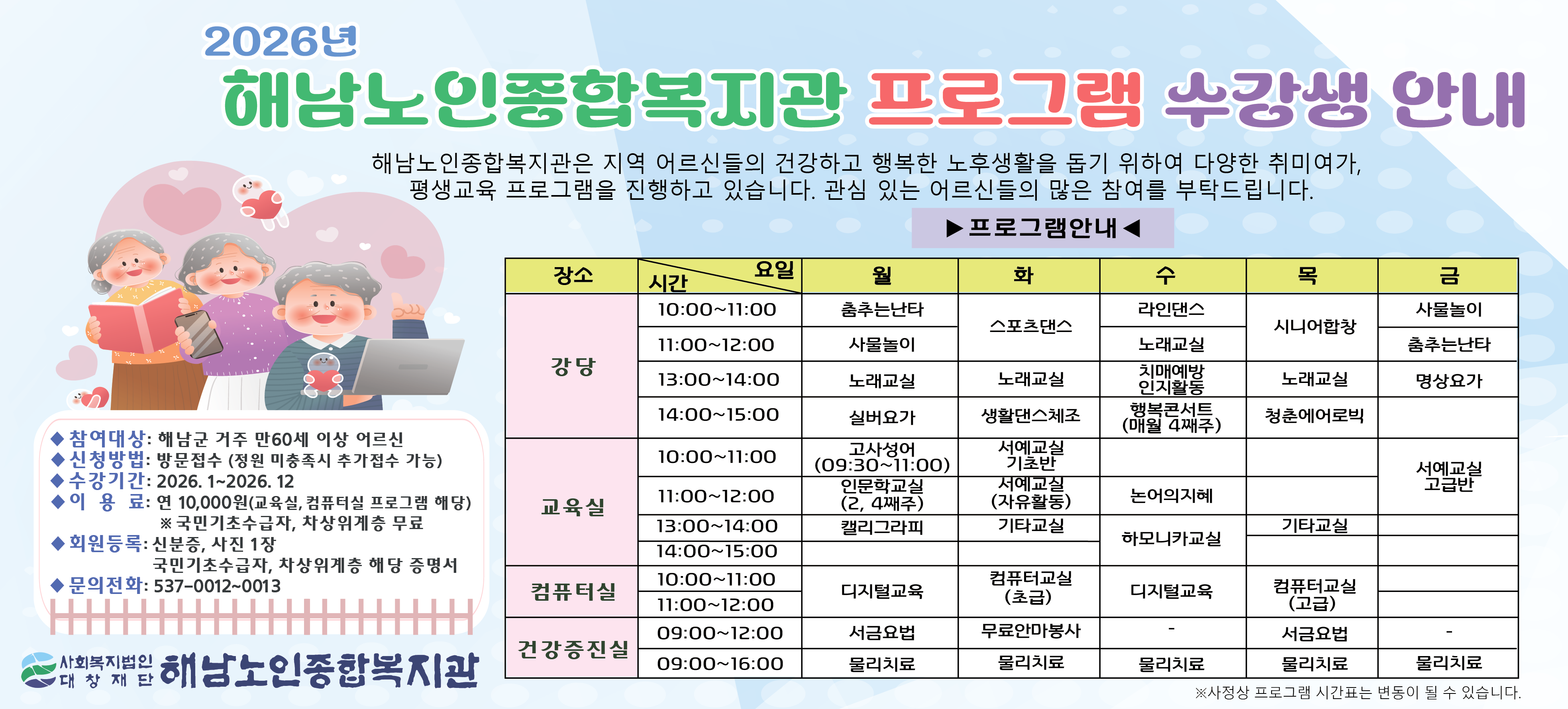 - 비 고: 노인복지관 회원등록 필수