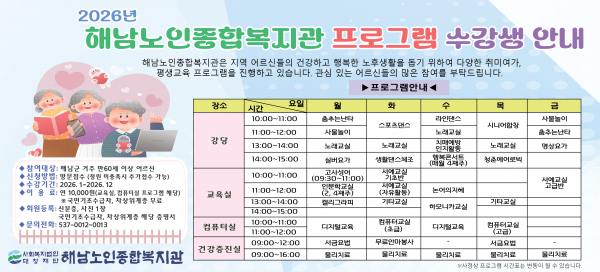 2026년 노년사회화교육사업 프로그램 수강생 모집
