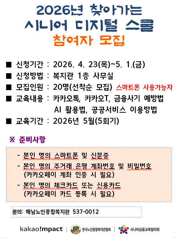 2026년 찾아가는 시니어 디지털 스쿨 참여자 모집